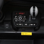 Multimediálny panel s Bluetooth, USB, MP3 a FM rádiom doplní jazdu obľúbenou hudbou; na volante sú tlačidlá klaksónu a zvukov. Vďaka 2,4GHz ovládaču s núdzovým STOP majú rodičia všetko pod kontrolou. Maximálne zaťaženie 50 kg a šírka interiéru umožnia pohodlné povozenie aj väčším deťom.