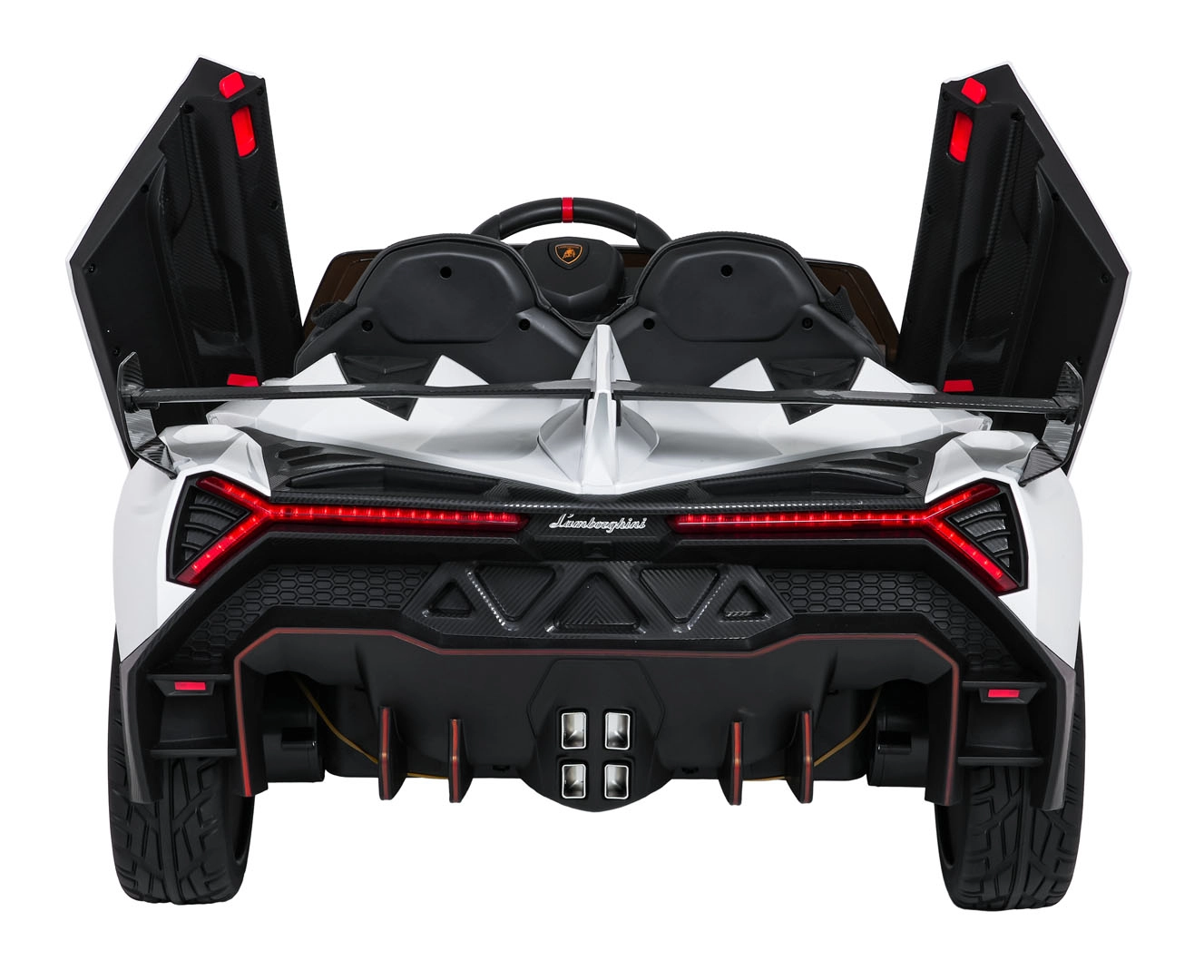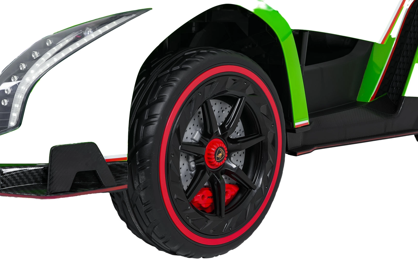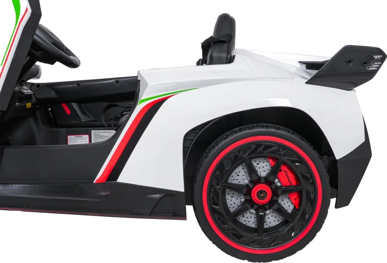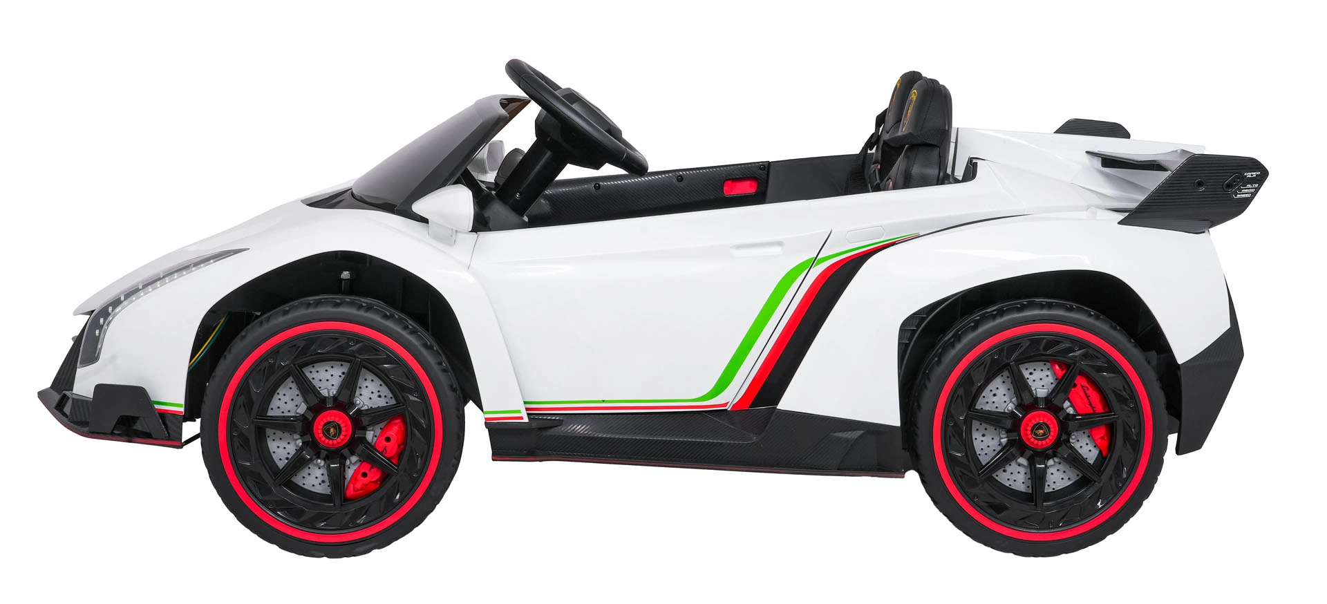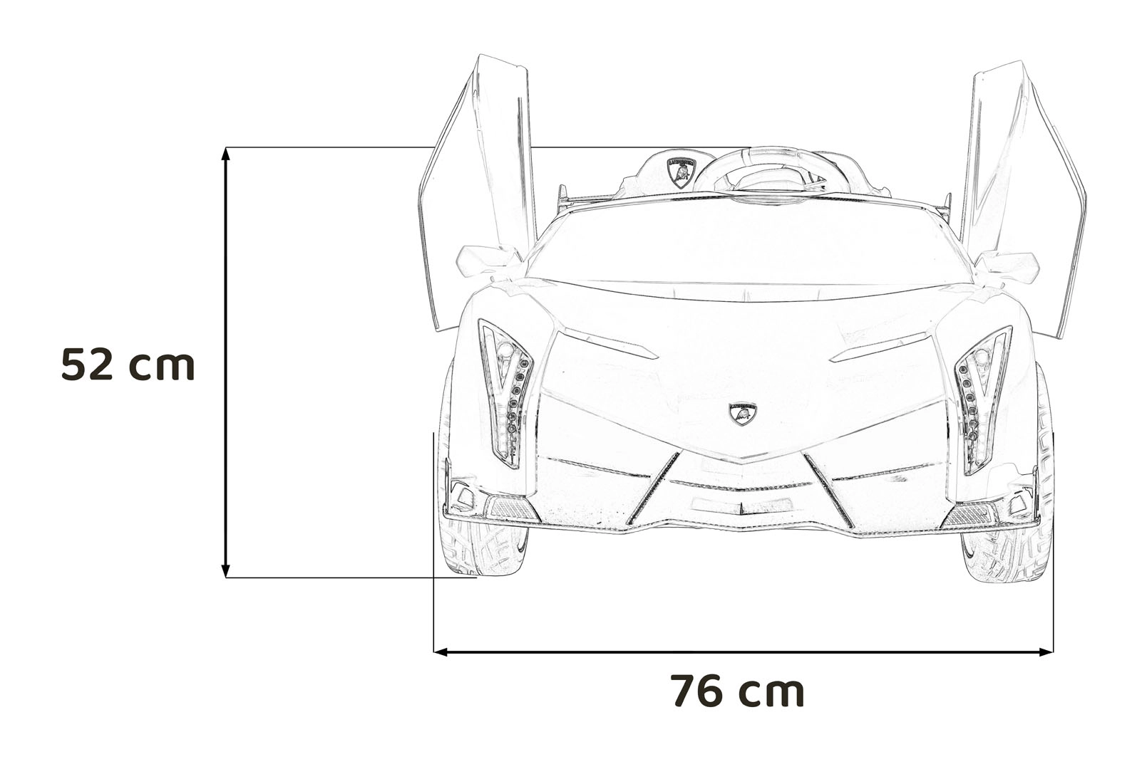 Splňte detský sen o jazde v superaute. Elektrické auto LAMBORGHINI Veneno v sýto červenej farbe spája špičkový výkon a bezpečie: štyri motory 4×45 W, dvojitá batéria 12 V 7 Ah ×2, plynulý rozjazd a dve rýchlosti vpred/vzad. Robustné EVA kolesá, zadné odpruženie a svetlá výška 10 cm zaistia pohodlnú jazdu aj na nerovnom povrchu.