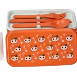 Praktický a roztomilý oranžový lunch box s motívom mačičky je ideálny na obedy do práce, školy aj na cesty. Súčasťou sú integrované príbory – lyžica a vidlička. Pojme porciu na celý deň, je vhodný do mrazničky a možno ho ohrievať v mikrovlnnej rúre bez veka (max. 100 °C). Kompaktné rozmery 20 × 10,6 × 10 cm uľahčujú prenášanie v taške či batohu.