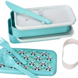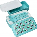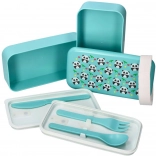 Súčasťou je plastová lyžička, vidlička a zúbkovaný nôž, ktoré sa ukladajú priamo do veka. Už žiadny zhon za príborom na poslednú chvíľu.