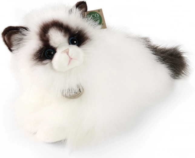 Plyšová mačka Ragdoll je vyrobená z vysoko kvalitného jemného plyšu, čo jej dodáva realistický vzhľad pripomínajúci živé zviera. Je súčasťou exkluzívnej kolekcie plyšových hračiek značky Rappa. Táto ekologická hračka má výplň z recyklovaných PET fliaš, čím prispieva k ochrane životného prostredia.
