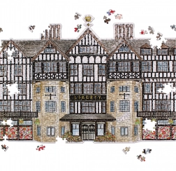 Objavte dizajnové obojstranné puzzle, ktoré spája umenie a relax. Na jednej strane vás čaká detailná fasáda svetoznámeho obchodu LIBERTY LONDON v tudorovskej architektúre, na druhej jemný a harmonický kvetinový motív. Vďaka dvom vizuálom si vyberiete, na čo máte práve náladu.