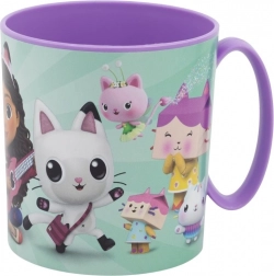 Praktický plastový hrnček s obľúbeným motívom Gábikin čarovný domček je ideálnou voľbou na každodenné používanie. Tento hrnček s objemom 390 ml je vyrobený z odolného materiálu, ktorý znesie nárazy a pády bez poškodenia.