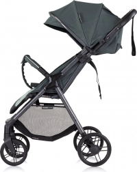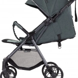 O plynulú jazdu sa starajú odpružené a rýchlo odnímateľné kolesá so zadnou článkovou brzdou, zatiaľ čo dieťaťu zaistí komfort polstrované 5-bodové pásy, nastaviteľná opierka chrbta aj nôh a veľká strieška s vetracím priezorom, slnečnou clonou a vreckom na drobnosti. Praktický veľký košík pojme nákupy aj všetko potrebné na cestu.