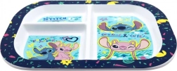 Farebný detský tanier s motívom STITCH poteší malých stravníkov a uľahčí každodenné stolovanie. Je bez BPA, vhodný do mikrovlnnej rúry a vďaka odolnému plastu vydrží každodenné používanie.