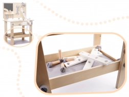 Skvelá drevená hračka dielenská súprava nástrojov pre malé deti, ktoré chcú napodobňovať dospelých a objavovať svet okolo seba. Vďaka bohatej výbave sa deti môžu cítiť ako skutoční majstri v odbore.