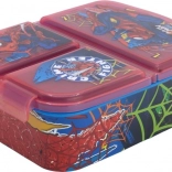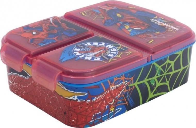 Originálny multibox na desiatu STOR s hrdinským motívom SPIDER-MAN pomôže deťom udržať desiatu prehľadne usporiadanú. Tri oddelené priehradky umožnia kombinovať ovocie a zeleninu, sendvič aj malú maškrtu, bez toho, aby sa navzájom miešali.