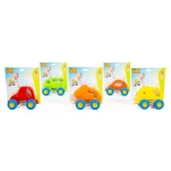 Roztomilé autíčko v tvare zajačika je navrhnuté pre bezpečnú a podnetnú hru najmenších detí. Vďaka gumovým kolieskam s hrubým vzorom je jazda tichá a plynulá na rôznych povrchoch. Valcovitý kontajner s farebnými guľôčkami pri pohybe príjemne hrká a rozvíja sluchové vnímanie.