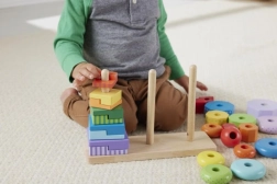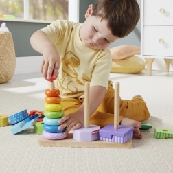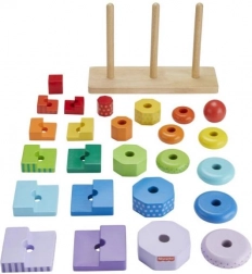 Drevená triediaca veža FISHER-PRICE ponúka tri samostatné veže s rôznymi tvarmi, ktoré deti navliekajú na kolíky na robustnej drevenej základni. Vďaka pestrofarebným dielikom deti trénujú triedenie, skladanie aj logické myslenie – a to všetko formou hry.