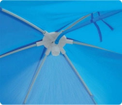 - Strieška s páskami – pevné uchytenie pomocou nastaviteľných šnúr pre stabilitu aj vo vetre.