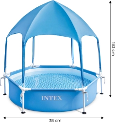 Užite si leto naplno s detským záhradným bazénikom INTEX s rozmermi 183×38 cm. Vďaka odnímateľnej strieške poskytuje spoľahlivú ochranu pred slnkom, pevná rámová konštrukcia a odolný trojvrstvový PVC materiál zaistia bezpečnú a stabilnú zábavu. Jednoduchá montáž, objem 700 l a kvalitné spracovanie od INTEX robia z tohto bazénika ideálnu voľbu na horúce dni na záhrade.