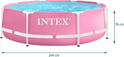 Ružový kruhový bazén Intex je ideálnou voľbou pre rodiny, ktoré chcú rýchlo a jednoducho vytvoriť na záhrade osviežujúcu oázu. Stabilný kovový rám, kvalitný 3-vrstvový materiál a jednoduchá montáž bez náradia zabezpečujú bezstarostnú prevádzku po celé leto. Deti si zamilujú špliechanie a hranie sa vo vode, zatiaľ čo rodičia ocenia bezpečnú a robustnú konštrukciu.
