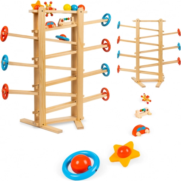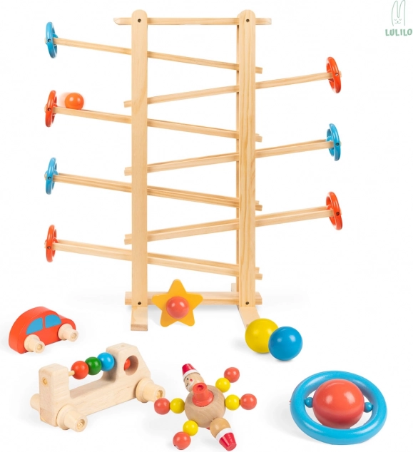Fantastická guličková dráha, ktorá vaše dieťatko zabaví na celé hodiny! Ovládanie hračky je veľmi jednoduché, ale zábavné! Sledovanie pohybujúcich sa figúrok poteší deti, ktoré budú obdivovať "kúzlo", ktoré uvádza guľôčky do pohybu. Sledovanie pohyblivých častí stimuluje zrak a sluch a rozvíja uvažovanie o príčine a následku.