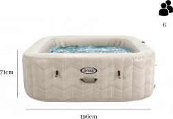 Nafukovacia vírivka značky INTEX je ideálnou voľbou pre všetkých, ktorí si chcú vytvoriť wellness zónu priamo doma. Vírivka o rozmeroch 196x71 cm ponúka priestor až pre 6 osôb, čo ju činí ideálnou ako pre rodinnú, tak aj relaxáciu s priateľmi. Vďaka štýlovému béžovému dizajnu ľahko zapadne do každého interiéru alebo exteriéru.