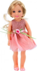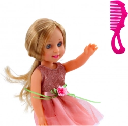 Bábika je oblečená v nádherných, trblietavých šatách s tylovou sukňou, ozdobenou jemnou kvetinou a zelenou stužkou, čo podčiarkuje jej dievčenský charakter. Celkový vzhľad dopĺňajú ružové topánky, dokonale zladené so šatami. Pohyblivé ruky a nohy zabezpečujú, že bábika je nielen vizuálne atraktívna, ale tiež veľmi funkčná pri hraní – možno ju voľne polohovať, posadiť alebo „tancovať“ vo vysnívaných scénach.