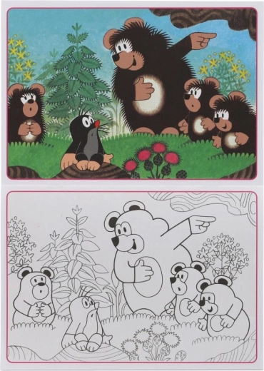 Objavte kúzlo nestarnúcich omaľovánok s motívmi KRTKO a medvede. Vďaka praktickému formátu A5 sa zmestia do batôžka aj do kabelky, takže deti môžu tvoriť doma, na cestách aj v škôlke. Každý list ponúka inšpiračný farebný vzor a oproti nemu čiernobiely obrázok na vyfarbenie, čo deťom uľahčuje výber farieb a podporuje ich fantáziu.