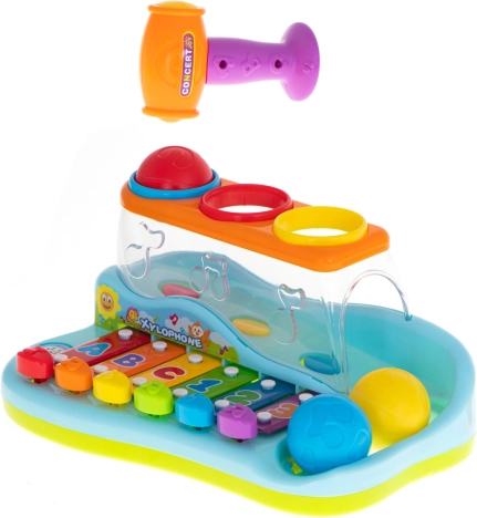 - Obsahuje kladivko a farebné guličky na ešte viac zábavy