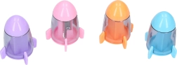Praktické školské strúhadlo na jednu ceruzku so zabudovaným zásobníkom na odrezky a integrovanou gumou v tvare vesmírnej lode. Ideálne na každodenné používanie, dostupné v 4 farbách a dodávané po 24 ks v tube. Jednoduché a čisté strúhanie, kompaktný dizajn a zábavný motív pre deti.