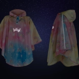 Premyslený strih umožňuje pretiahnuť pršiplášť cez batoh alebo aktovku, takže detské veci zostanú v suchu. Reflexné prvky zvyšujú viditeľnosť za šera aj dažďa a praktické sťahovacie vrecko farebne ladí s motívom ponča – ideálne na cesty, do školy aj na krúžky.
