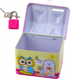 Táto pokladnička je opatrená praktickým kovovým zámkom s dvoma kľúčikmi, čo jej dodáva charakter skutočného "trezoru" a umožňuje dieťaťu cítiť zodpovednosť za svoje úspory. Pevná konštrukcia z odolného kovu zaisťuje odolnosť voči každodennému používaniu a detským experimentom. Vďaka strešnému otvoru na vkladanie mincí je nielen užitočná, ale tiež veľmi atraktívna vizuálne. Perfektný ako darček, ktorý kombinuje hru, dekoráciu i vzdelávanie.