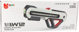 Elektrická vodná pištoľ W12 je navrhnutá pre maximálnu zábavu bez zbytočného pumpovania. Jedno stlačenie spúšte vystrelí silný prúd vody, zatiaľ čo LED osvetlenie dodáva vizuálne efekty, ktoré vynikajú hlavne po zotmení. Pištoľ je napájaná akumulátorom 3.7V Li, ktorý je možné jednoducho nabiť cez priložený USB kábel.