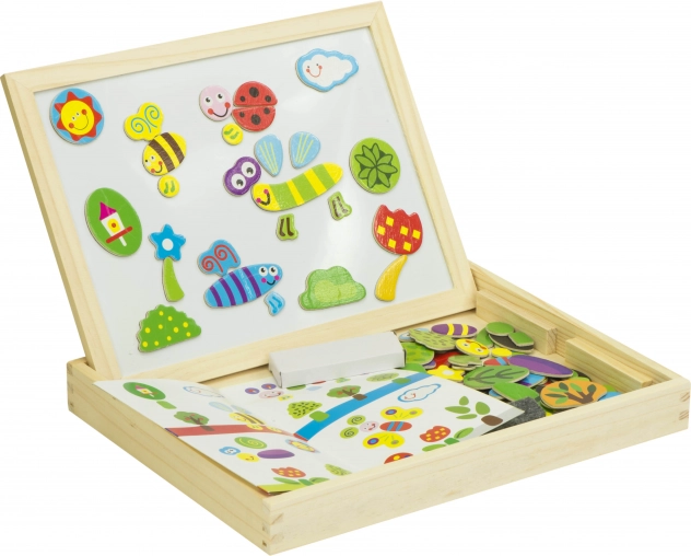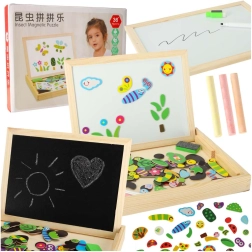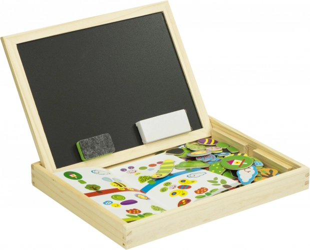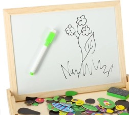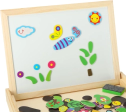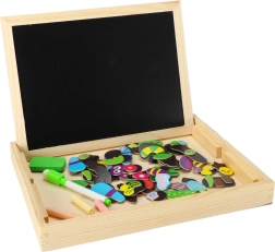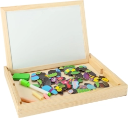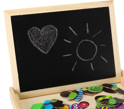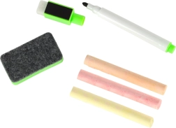 - Balenie obsahuje: obojstrannú tabuľu, 100 magnetov, farebné kriedy, hubku, fixky