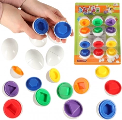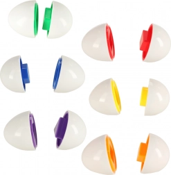 Farebné vajíčka pomáhajú deťom rozvíjať koordináciu oka a ruky tým, že skladajú polovice podľa tvarov a farieb.