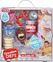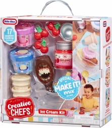 Objavte zábavný zmrzlinový set pre deti LITTLE TIKES Creative Chefs, ktorý podporuje kreativitu, rolové hry a učenie hrou. Vďaka 17 realistickým doplnkom, trom „príchutiam“ (vanilka, čokoláda, jahoda) a opakovane použiteľnému modelovaciemu piesku si deti môžu „naberať“ kopčeky, zdobiť a servírovať svoje obľúbené dezerty podľa vizuálnej receptovej karty.