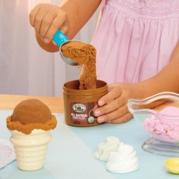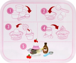 Súčasťou je špeciálny modelovací piesok na jednoduché tvarovanie kopčekov, karta s receptom na učenie sa postupov krok za krokom a bohatá výbava príslušenstva na realistickú prípravu zmrzliny v detskej kuchynke.