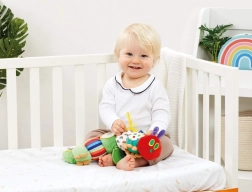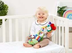 Zoznámte sa s ikonickou postavičkou z knihy – Veľmi hladná húsenica – ako mäkučká textilná aktívna hračka pre bábätká od narodenia. Farebné vzory, rôzne textúry, detsky bezpečné zrkadielko a hryzátko v tvare listu podporujú senzorický rozvoj, koordináciu ruka–oko aj aktívnu hru doma i na cestách. Praktické pútka umožnia ľahké pripevnenie na kočík, autosedačku či postieľku.