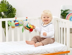 Vďaka praktickým textilným pútkam hračku ľahko pripevníte ku kočíku, postieľke alebo prebaľovacej taške. Je ideálna na doma aj na cesty – zabaví, upokojí a zároveň rozvíja zmysly. Skvelý tip na darček k narodeniu bábätka či k uvítaniu občanov.