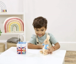 Hračka je vyrobená zo starostlivo vybraných, kvalitných a udržateľných materiálov a prichádza v elegantnej darčekovej taške s motívom Union Jack – pripravená na okamžité darovanie.