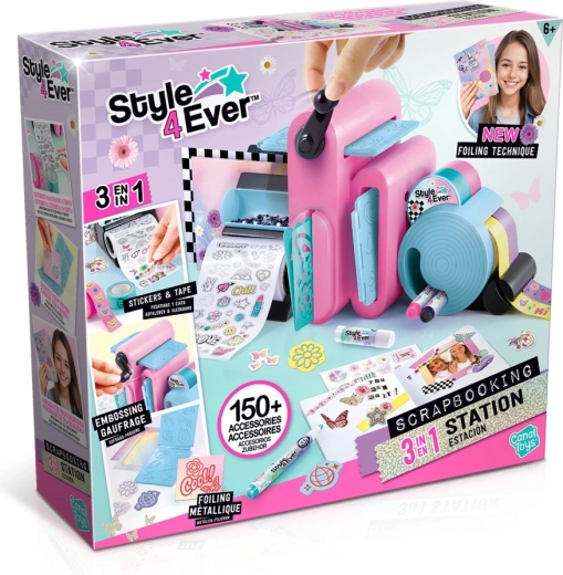 Objavte univerzálnu kreatívnu stanicu STYLE 4 EVER, s ktorou deti ľahko vytvárajú samolepky, embosované motívy a dekoratívne washi pásky. Ručne ovládaný stroj, viac než 150 doplnkov a praktický zápisník podporujú fantáziu, jemnú motoriku a radosť z tvorenia.