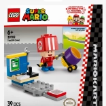 Vstúpte do sveta Mario Kart s touto skvelou stavebnicou, ktorá obsahuje figúrku Toada, pracovisko, motokárovú pneumatiku, vozík s kolesami a náradie.