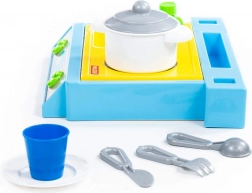 Malá stolová súprava obsahujúca drez, platničku a sadu riadu