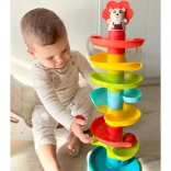 Postavte pestrú špirálovú vežu a sledujte, ako sa guľôčky kotúľajú po úrovniach nadol. Diely guľodromu sa k sebe ľahko nacvakávajú, takže deti môžu stavať opakovane, trénovať trpezlivosť aj tvorivosť. Každá z 6 farebných guľôčok sa pri pohybe príjemne ozýva, čím podnecuje zmysly a predlžuje čas hry.