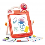 Kresliaca strana ponúka čistú, suchostierateľnú plochu, 8 farebných fixiek, hubku a 18 obojstranných kariet na opakované maľovanie a písanie.