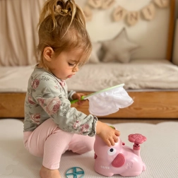 Pútavý dizajn ružového slona motivuje deti k hre a tréningu koordinácie každý deň.
