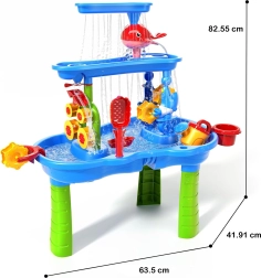 Objavte hrací stolík, ktorý zabaví deti doma aj vonku. Vďaka 3-úrovňovej konštrukcii môžu malí bádatelia nalievať vodu do hornej nádržky, sledovať vodopád stekajúci do spodného bazénika a roztočiť vodný mlynček. Stolík je ideálny aj na hru s pieskom – bežným aj kinetickým.