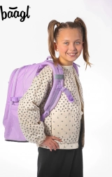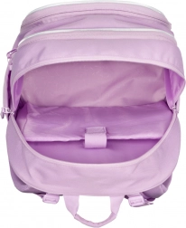 Batoh Core Levanduľa s iridescentnou prednou kapsou vytvára moderný vzhľad a ponúka dostatok priestoru pre organizáciu školských potrieb.