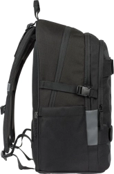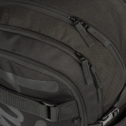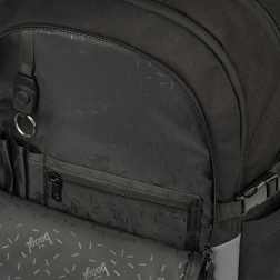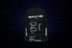 Vonkajší materiál je recyklovaný a vodeodolný, takže batoh spoľahlivo odolá premenlivému počasiu. O bezpečnosť sa starajú výrazné reflexné prvky pre lepšiu viditeľnosť za šera a tmy. Nechýbajú bočné vrecká z pevného materiálu na fľašu na pitie, odolné zipsy YKK a predné popruhy na uchytenie skateboardu. Batoh je navyše možné zladiť s peračníkom, vrecúškom na obuv a ďalšími doplnkami v rovnakom dizajne; súčasťou je aj štýlový prívesok.