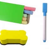 - Klasická čierna plocha na písanie a kreslenie kriedou v niekoľkých farbách, ktorú možno ľahko zotrieť pomocou hubky.