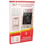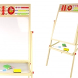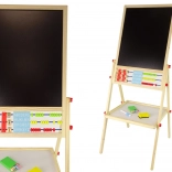 Drevená obojstranná tabuľa je ideálna edukatívna hračka pre deti od 3 rokov. Stabilná konštrukcia na nohách zaručuje bezpečné hranie. Kombinácia dvoch povrchov, jedného kriedového a druhého magnetického, ponúka mnoho variantov hier: