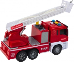 - hasičské auto s funkciou striekania vody, výsuvný a otočný rebrík, nádržka a hadica, 3 batérie AG13