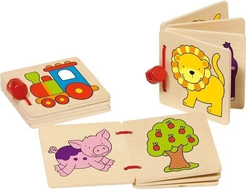 Táto drevená obrázková knižka je ideálnym spôsobom, ako motivovať deti k čítaniu a rozvíjať ich predstavivosť a komunikačné schopnosti. Vďaka kompaktným rozmerom je vhodná aj na cesty, čo z nej robí skvelého spoločníka pre vašu rodinu. Knižka obsahuje 3 rôzne motívy, ktoré lákajú deti svojou pestrosťou a atraktívnosťou.