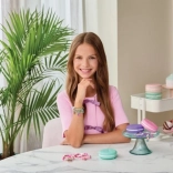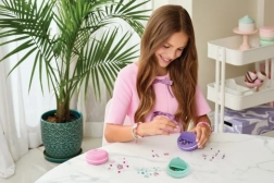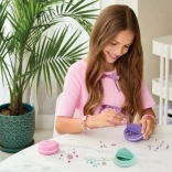 Objavte sladký svet tvorenia so sadou Macaron box na výrobu náramkov. Každý z farebných macaronov ukrýva koráliky, prívesky a šnúrky, ktoré stačí navliecť a vytvoriť si originálne náramky s motívmi dezertov. Vďaka chytrému obalu si ľahko zmeriate a odstrihnete potrebnú dĺžku šnúrky priamo okolo obvodu macaronu.