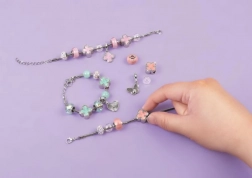 Objavte radosť z DIY šperkov a navrhnite si tri originálne náramky podľa vlastnej fantázie. Kombinujte jemné pastelové koráliky, trblietavé prvky a roztomilé motívy srdiečok, kvietkov či motýlikov. Jednoduché zapínanie a vymeniteľné prívesky umožňujú rýchlo meniť štýl podľa nálady aj outfitu.
