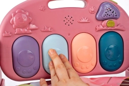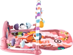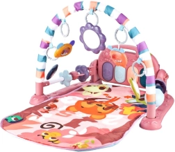 Táto ružová edukačná podložka vytvorí bezpečné a podnetné miesto na každodenné hranie. Farebný oblúk so zavesenými hračkami motivuje bábätko k naťahovaniu a uchopovaniu, čo posilňuje koordináciu oko–ruka. Interaktívne piánko s podsvietenými klávesmi ponúka 3 zvukové režimy – tóny stupnice Do–Re–Mi–Fa, krátke zvuky (napr. detský smiech) a dlhšie melódie – a tým prispieva k rozvoju sluchu a rytmu.