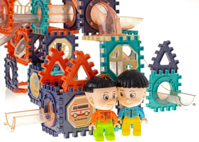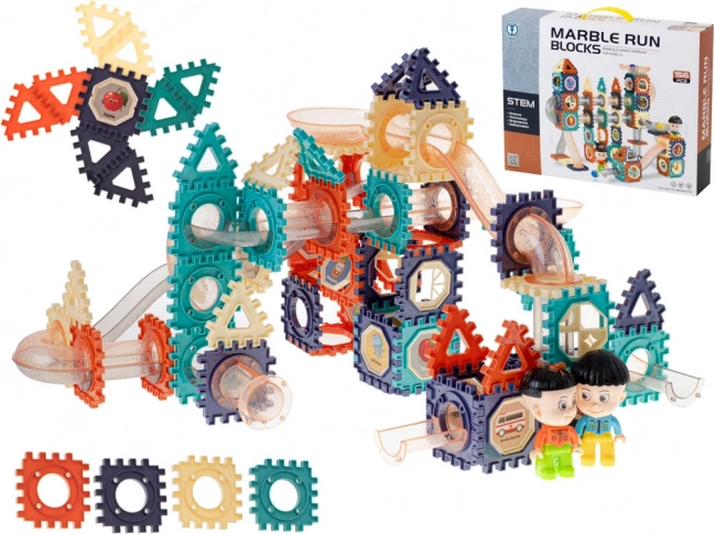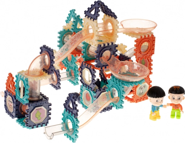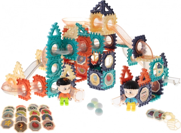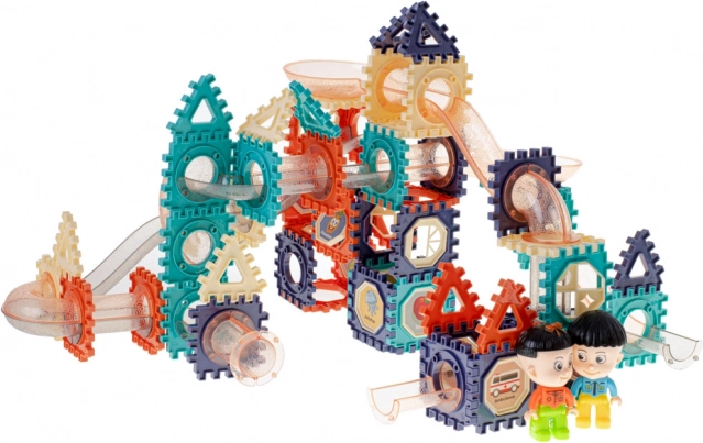 Farebná stavebnica pre deti od 3 rokov s celkovo 156 prvkami umožní postaviť vlastnú guľôčkovú dráhu plnú tunelov, zjazdov a priehľadných trubíc. Hra rozvíja jemnú motoriku, logické myslenie a priestorovú predstavivosť, zatiaľ čo sledovanie jazdy guľôčok podporuje vizuálne vnímanie a sústredenie.