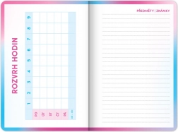Stránky na rozvrh hodín a priestor na poznámky, ideálne pre záznam úloh a dôležitých dát.